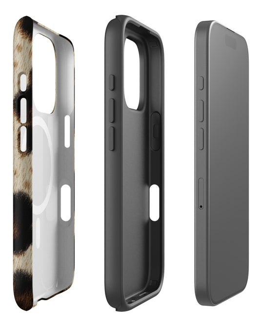 Double-Layer Semi-Handprinted Tough Matte Leopard Print iPhone Case (MagSafe-Compatible)