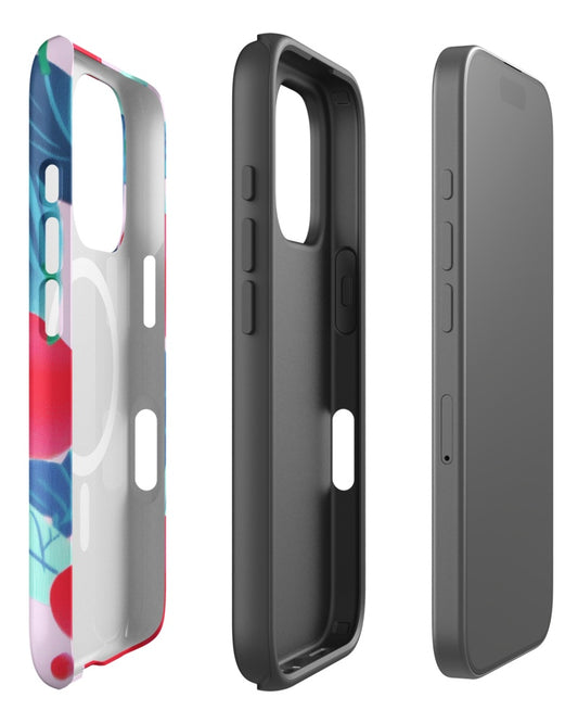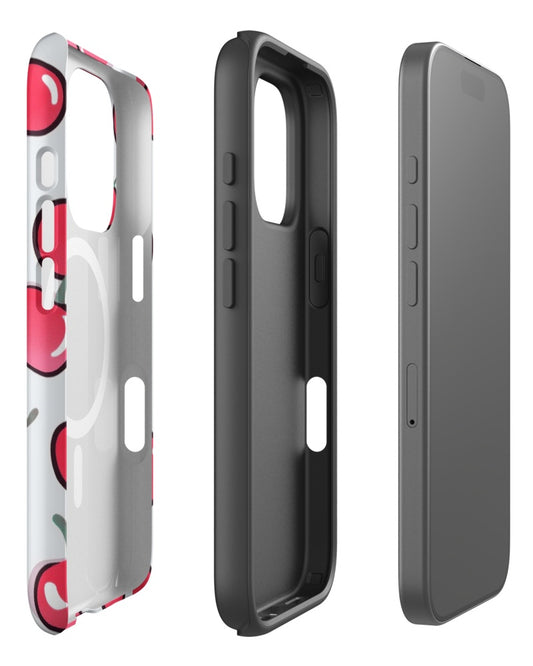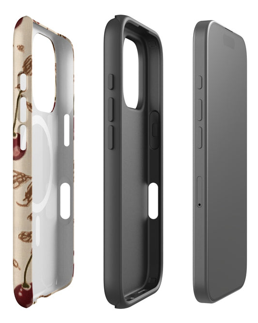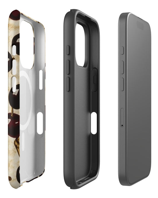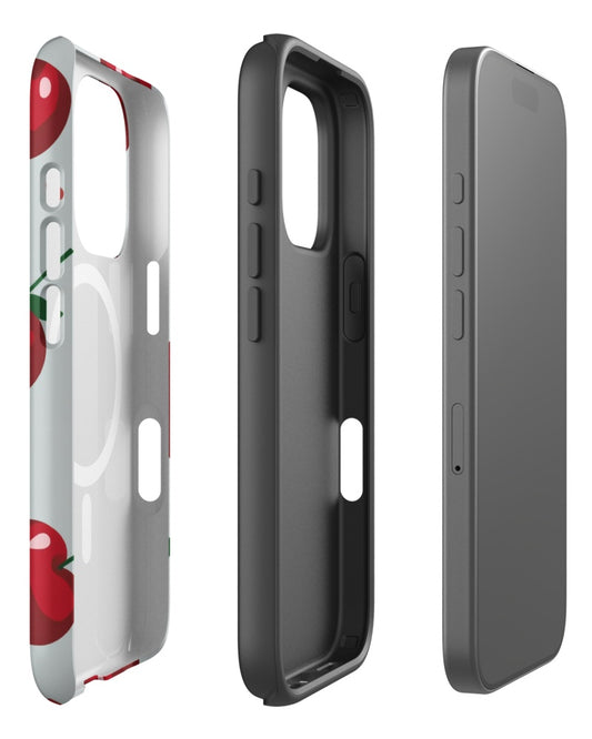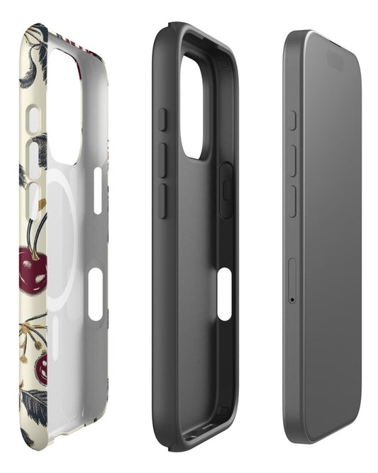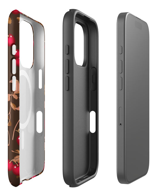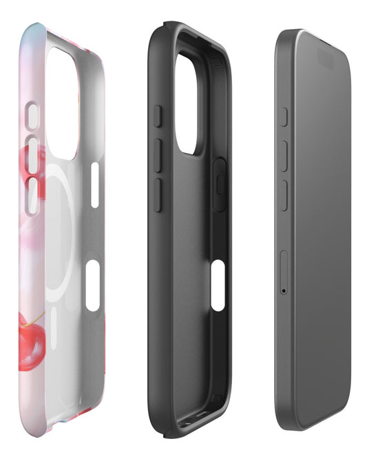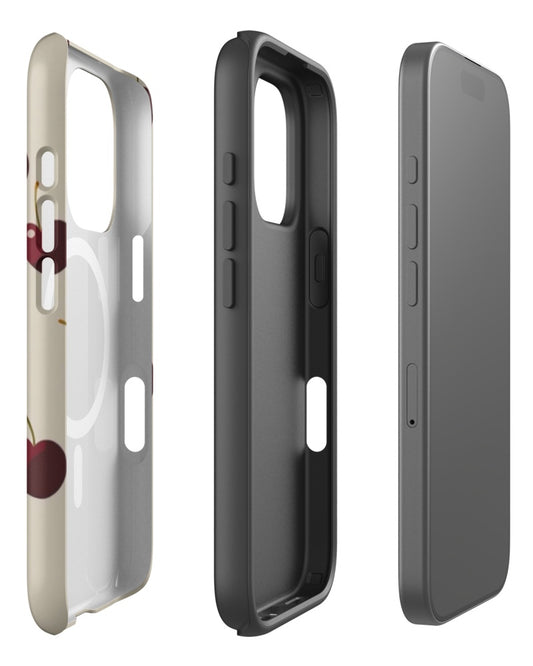 Double-Layer Semi-Handprinted Tough Matte Cherries iPhone Case (MagSafe-Compatible)
