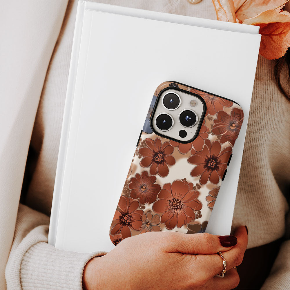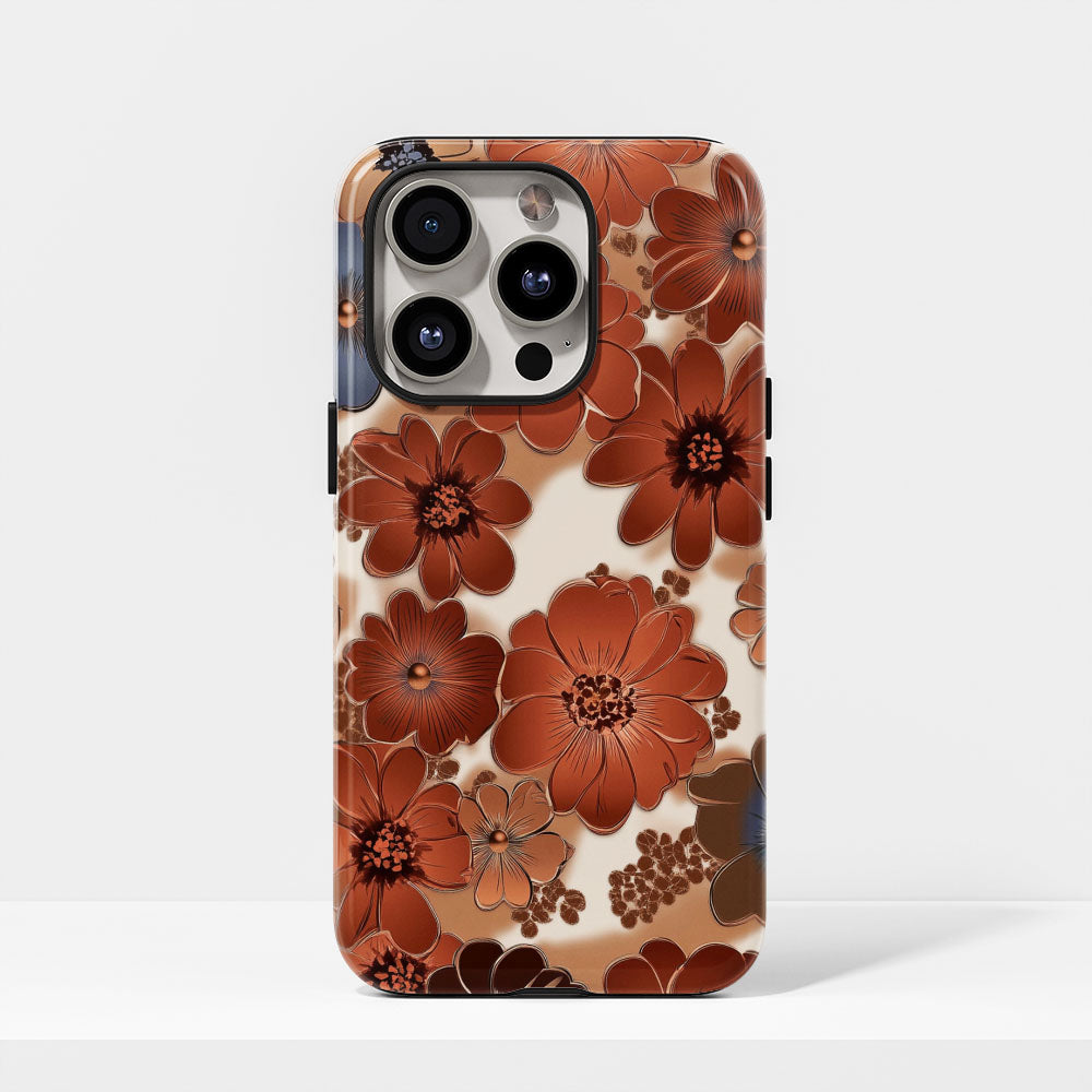 Double-Layer Semi-Handprinted Tough Matte Flowers iPhone Case