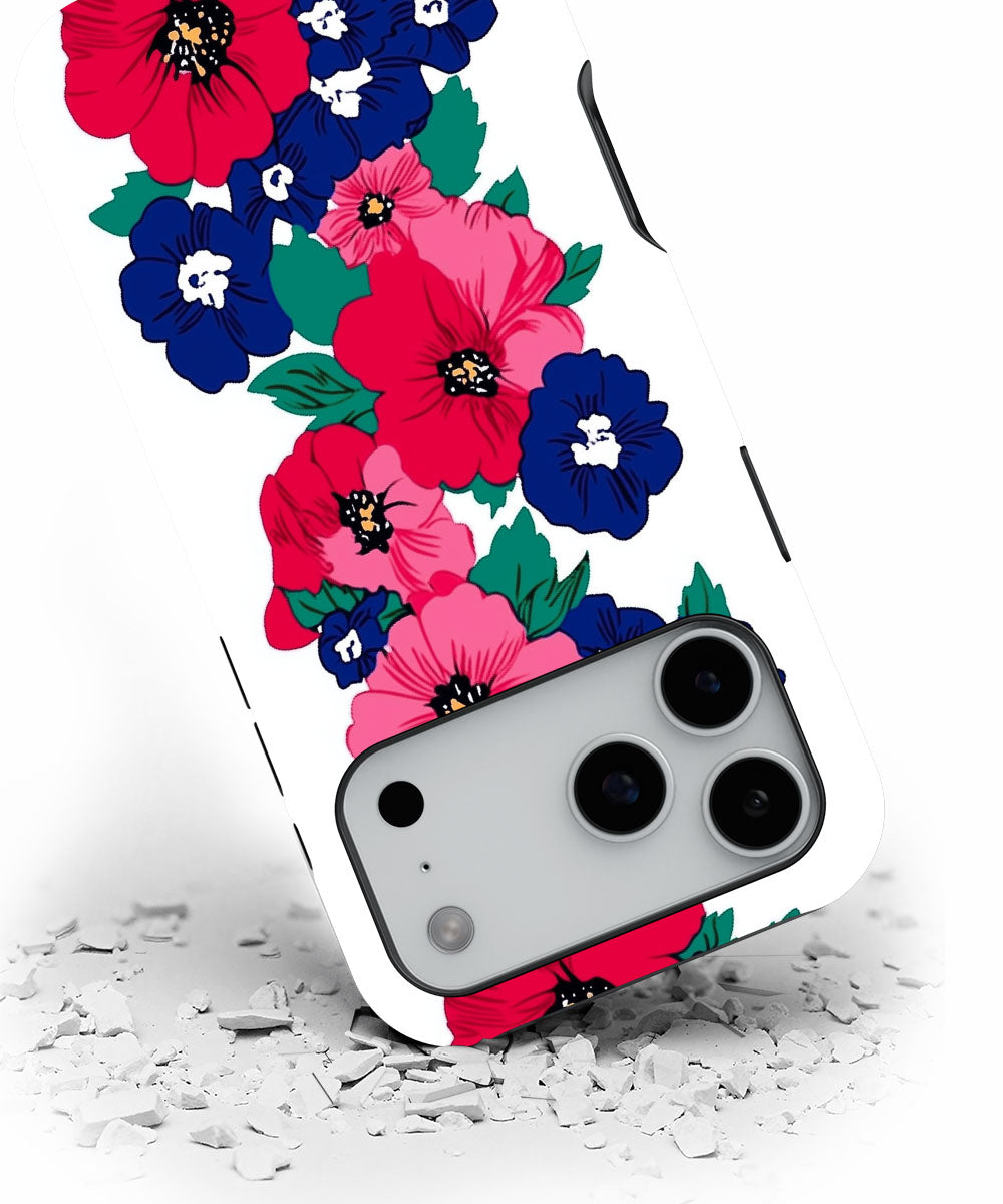 Double-Layer Semi-Handprinted Tough Matte Flowers iPhone Case