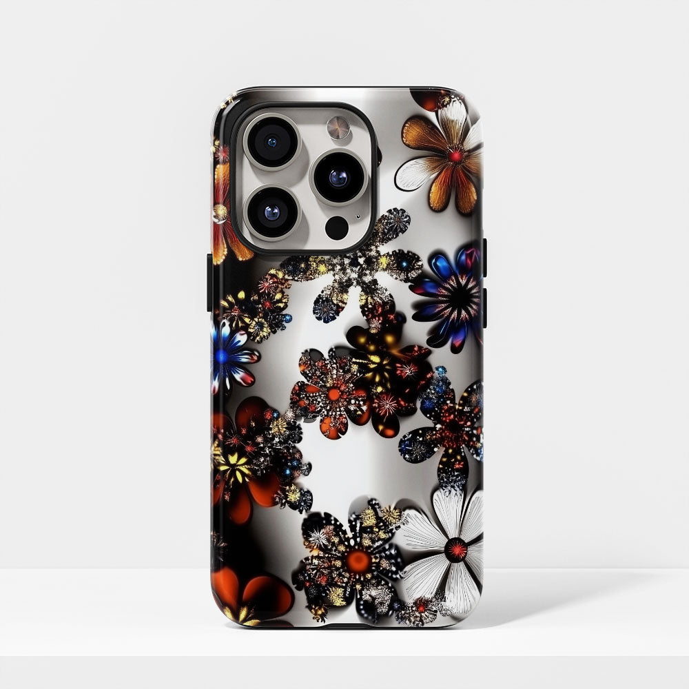 Double-Layer Semi-Handprinted Tough Matte Flowers iPhone Case