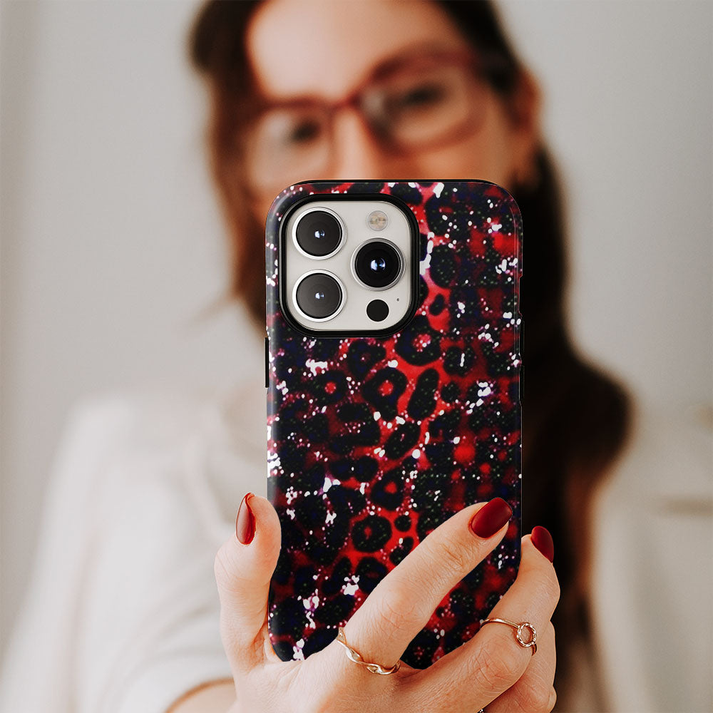 Double-Layer Semi-Handprinted Tough Matte Leopard Print iPhone Case