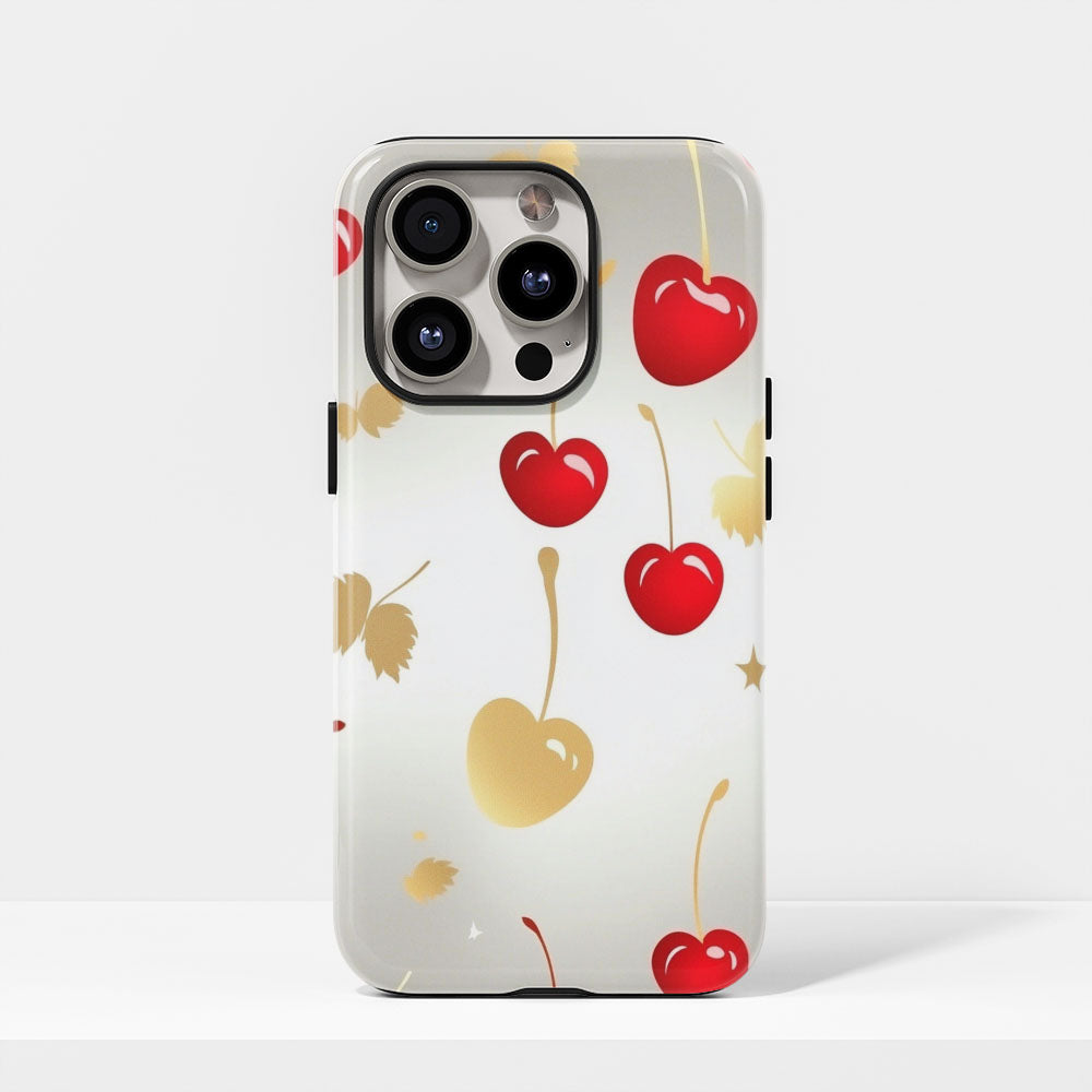 Double-Layer Semi-Handprinted Tough Matte Cherries iPhone Case