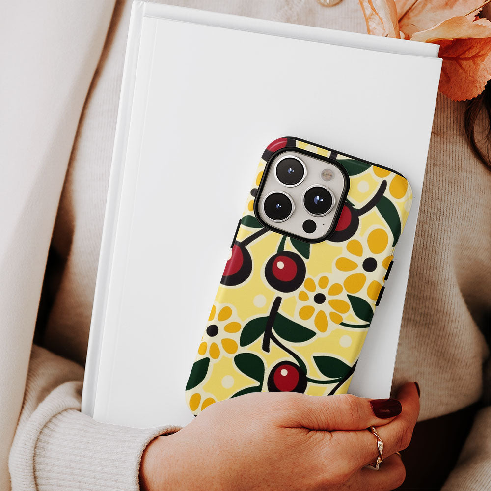 Double-Layer Semi-Handprinted Tough Matte Cherries iPhone Case
