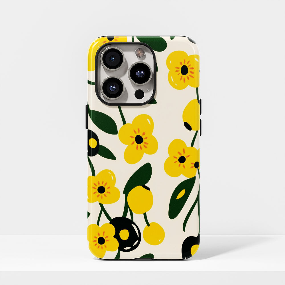 Double-Layer Semi-Handprinted Tough Matte Flowers iPhone Case