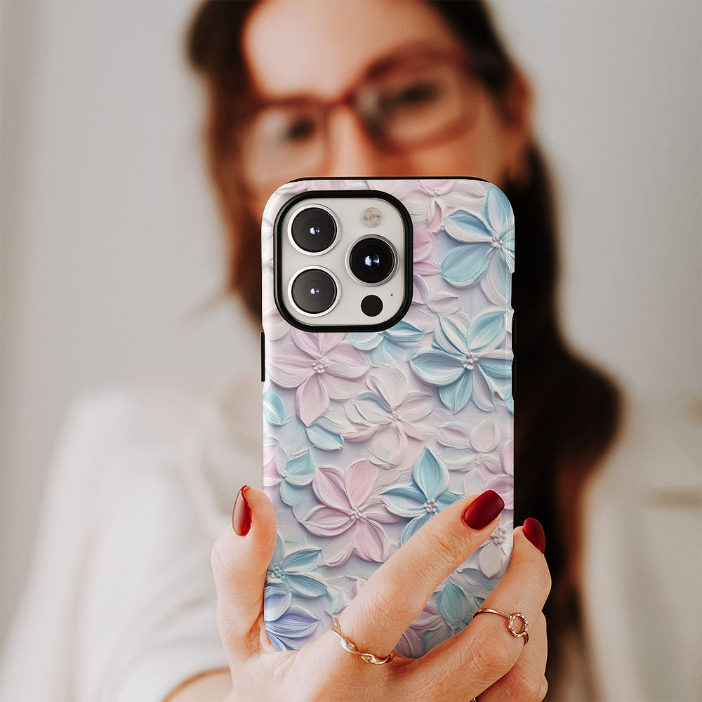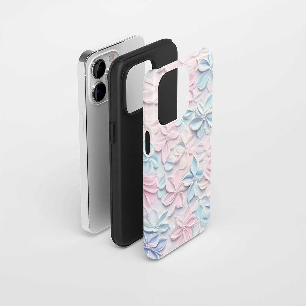 Double-Layer Semi-Handprinted Tough Matte Flowers iPhone Case