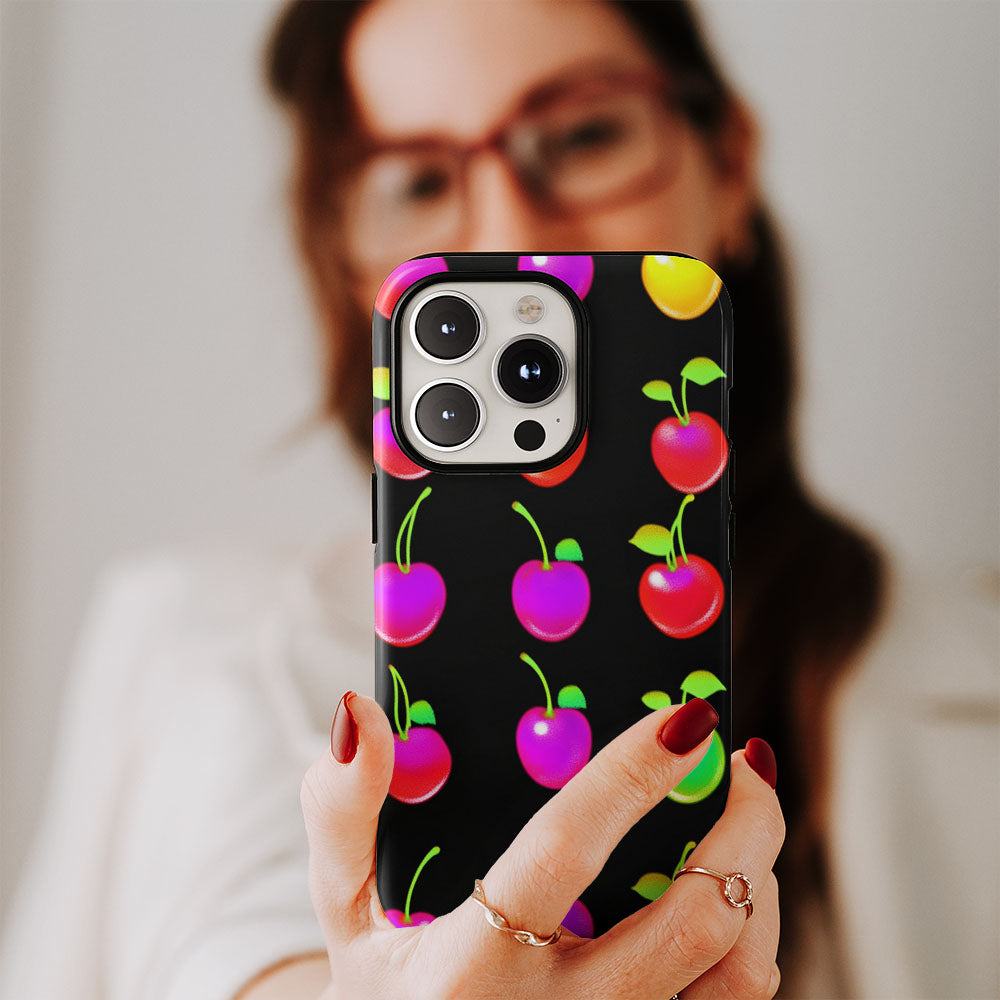 Double-Layer Semi-Handprinted Tough Matte Cherries iPhone Case