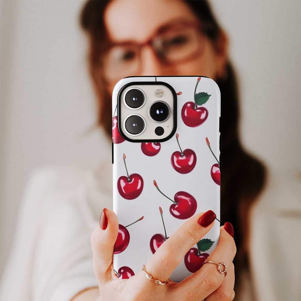 Double-Layer Semi-Handprinted Tough Matte Cherries iPhone Case