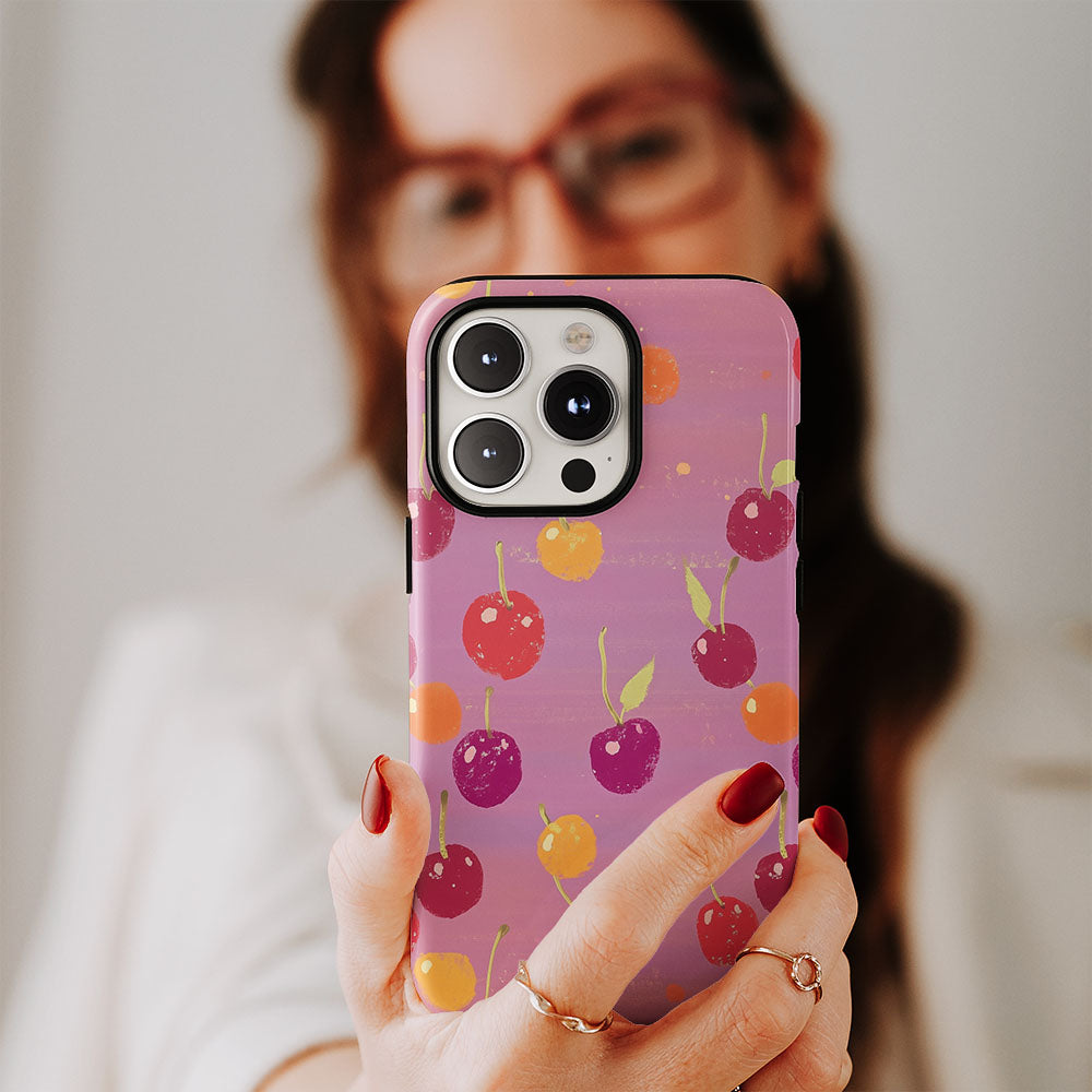 Double-Layer Semi-Handprinted Tough Matte Cherries iPhone Case